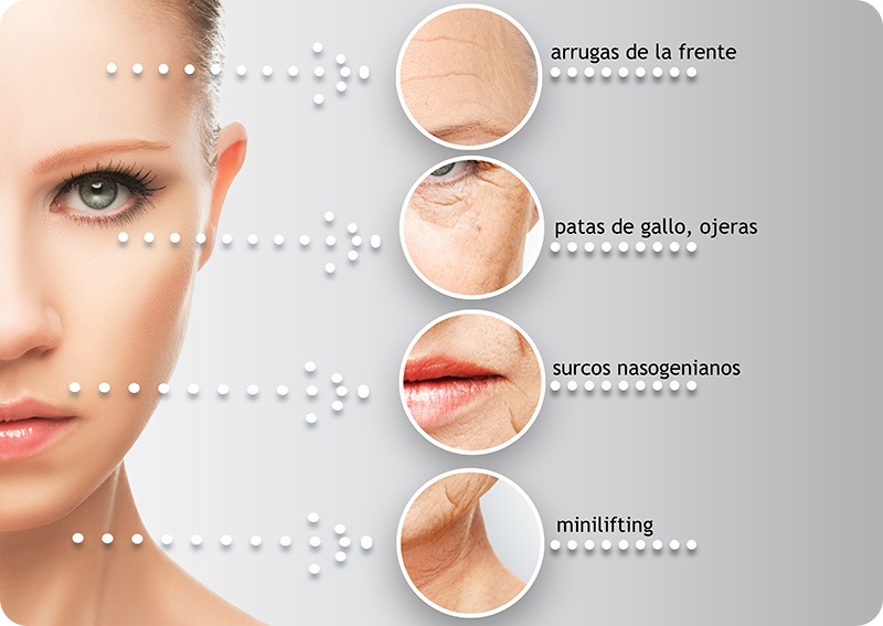 De esta forma, a medida que vamos envejeciendo, el ácido Hialurónico va menguando en su concentración provocando que la piel luzca más deshidratada, y como consecuencia directa, se favorezca la formación de arrugas y surcos. Aquí es donde entra en juego el ácido Hialurónico en las zonas como arrugas o patas de gallo, Líneas verticales que se hacen alrededor de los labios, relleno de labios o surcos lagrimales, surcos naso labiales o depresiones por cicatrices.  Favorece la recuperación de la piel rápidamente dándole un aspecto más joven e hidratado.